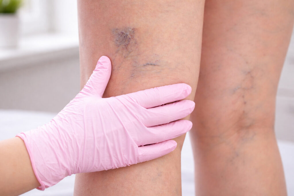 Spider veins are smaller, red or blue lines near the skin’s surface, often forming web-like patterns on the thighs, calves, or face. While usually painless, they may affect confidence and sometimes indicate deeper venous issues.